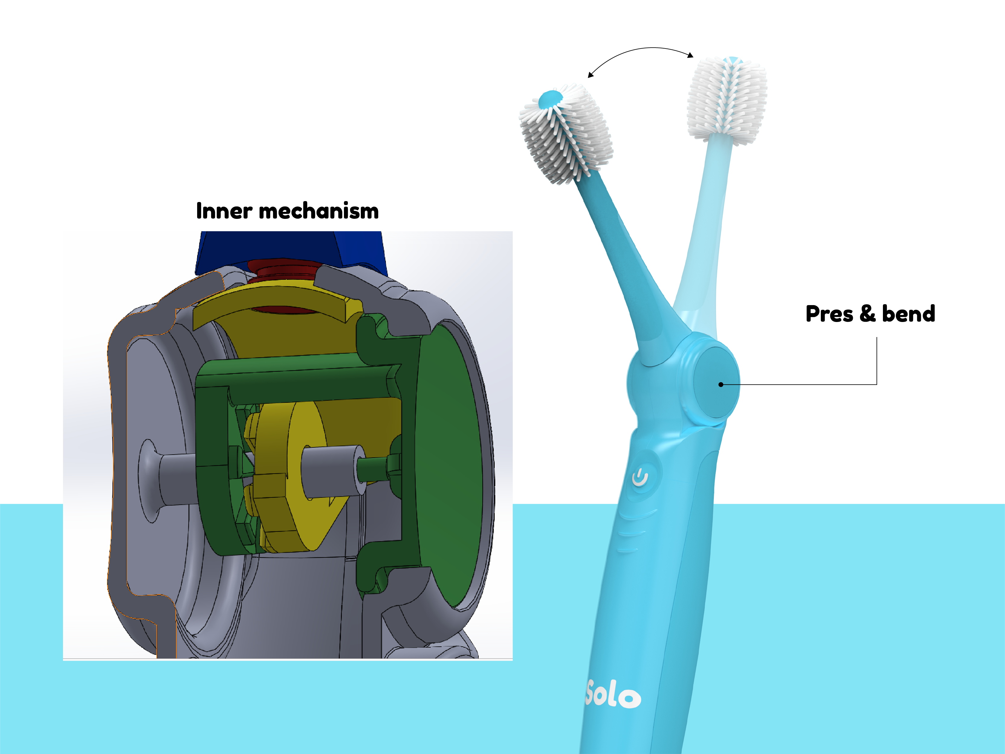 הפרויקט שלי שם דגש על לתת לילדים את היכולת והעצמאות, במידה האפשרית, לצחצח שיניים לבד ולעשות זאת בצורה יעילה. כחלק מהמחקר שעשיתי, ראיינתי מומחים וניהלתי תצפיות פעילות עם הילדים על מנת להבין לעומק את הצרכים שלהם. המטרה של סולו היא לכפות על המוגבלויות והאתגרים אותם אבחנתי בזמן התצפיות.