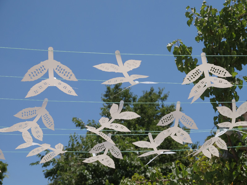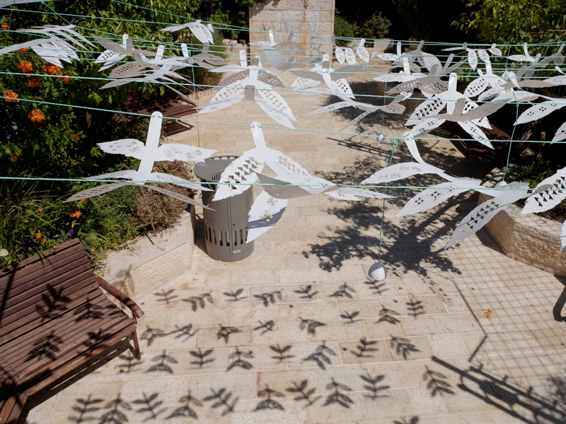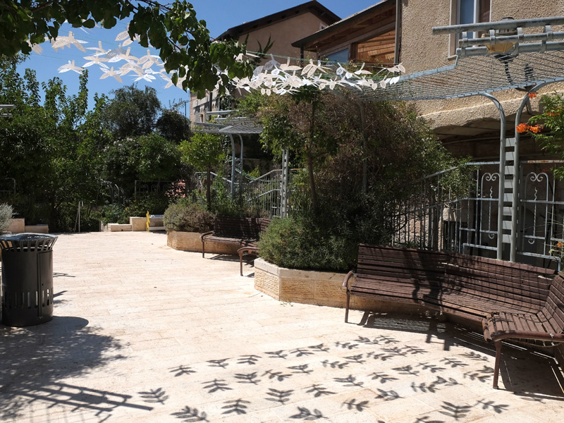 In this space, we created a shading system that provides an interesting visual display, reminiscent of a grandmother's garden during the holidays, full of natural vibrancy and family life, and transposing that feeling to an urban space in the Nachlaot neighborhood.