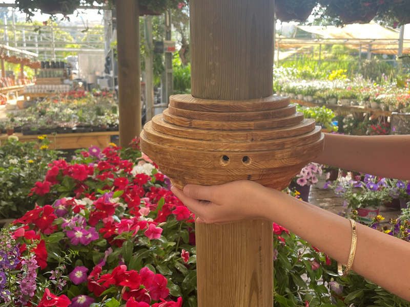 We created a beehive for bumble bees used in hothouse pollination, a method that Israel was one of the first countries to try and employ. Unlike existing hives on the market, this is a new and personalized hive comprised of ecological layered materials, just as their lives are structured. The hive encapsulates the tree just as it does in the nature and fits organically onto an existing wooden pole.