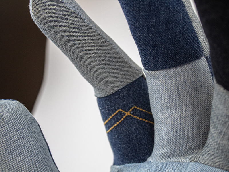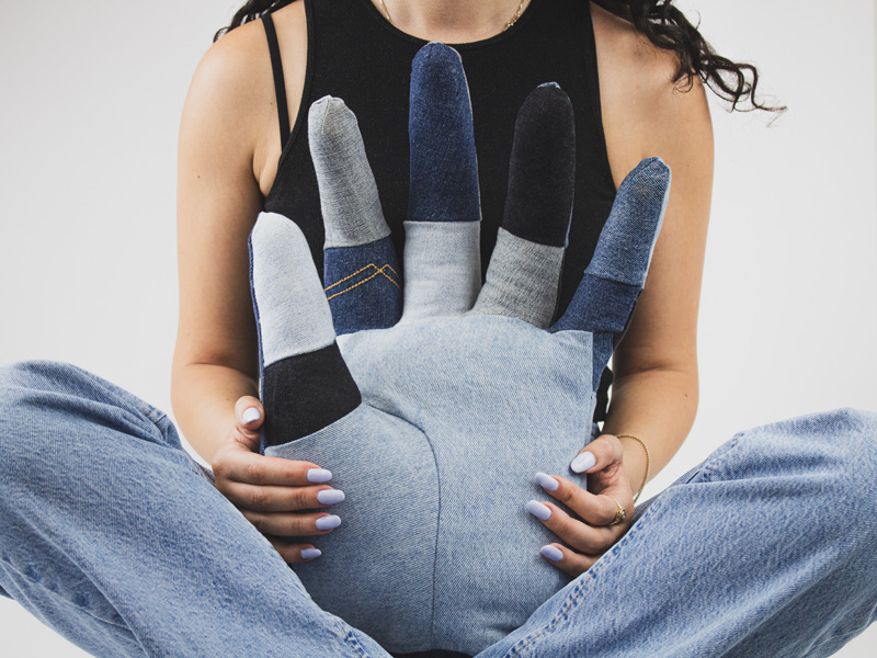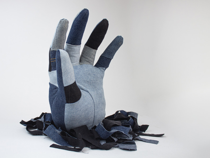 We decided to raise issues that exist behind the scenes of the textile industry following compulsive Western consumerism and its impact on hundreds of thousands of workers employed in harsh conditions in this industry. The hand was created from jeans as this is a commonly used fabric among every population, and we chose to enlarge it so that it received the attention it cries out for. During its preparation, we understood our hand felt empathetic, because just as it demonstrates the struggles of the textile industry workers, it is equally comforting and gentle.