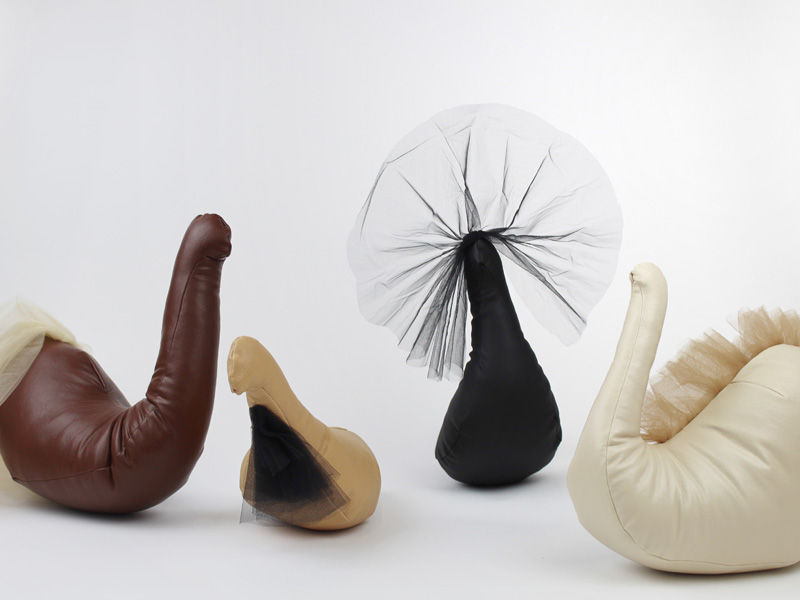 I created a series of dolls that are hybrids of Barbapapa and Barbamama. Barbapapa was a character that underwent exclusion due to his strange shape and felt complete when he met Barbamama. Having experienced this exclusion, his heart is fragile and he is sensitive, sometimes even leaving his body. I opted for creating the series in a variety of colors and shapes because despite our many differences, we are all very similar. My figures are based on the same shape but end up looking different. Each has its individual beauty and personality and that is makes them unique.