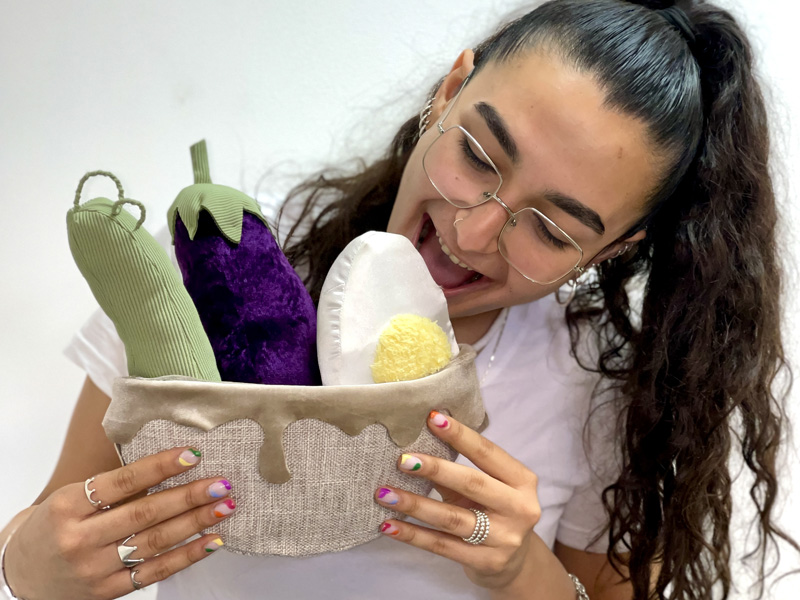 Humor is the element of common ground for our group members and it was important to us to make our viewers smile. We chose sabich as a popular dish from among Israel's many ethnic groups and origins, a pita pocket that contains eggplant, egg, and pickles, absorbing each individual flavor. In a cultural focus on sabich and its inclusion a podcast, we used different textures to increase pleasure in the user experience.