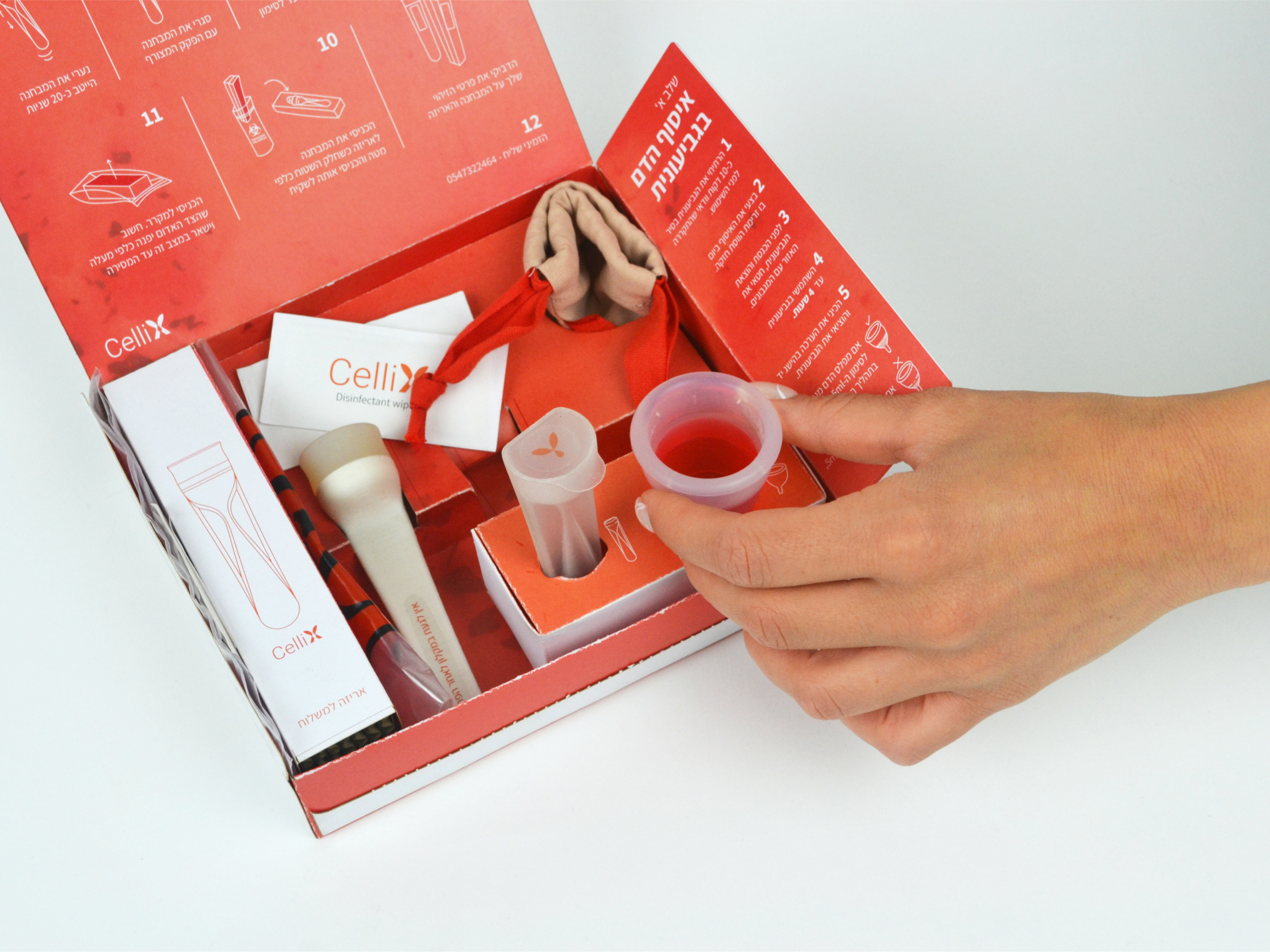 CELLIX  is a home kit to gather and store menstrual blood, making the platform for blood donation and its transfer to the lab accessible, and providing an additional source of stem cells. The kit design addresses every stage of the process from initial collection done by users at home to the cell separation at the lab.