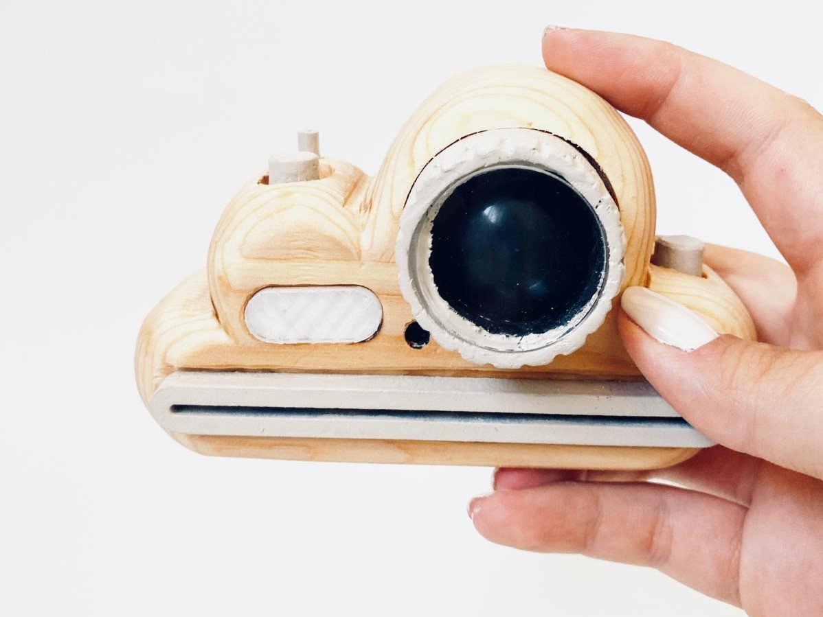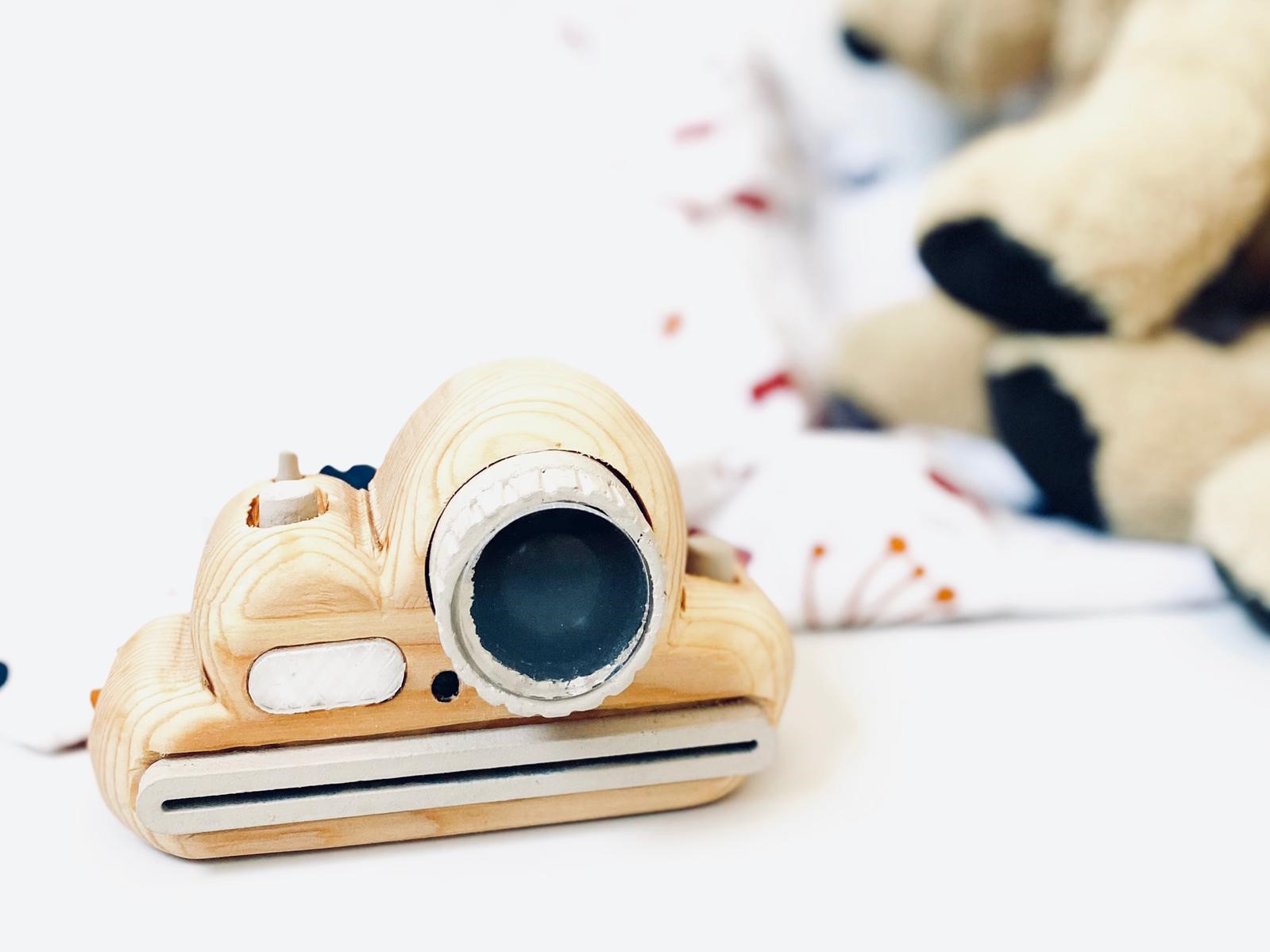 A camera inspired by wooden toys for children