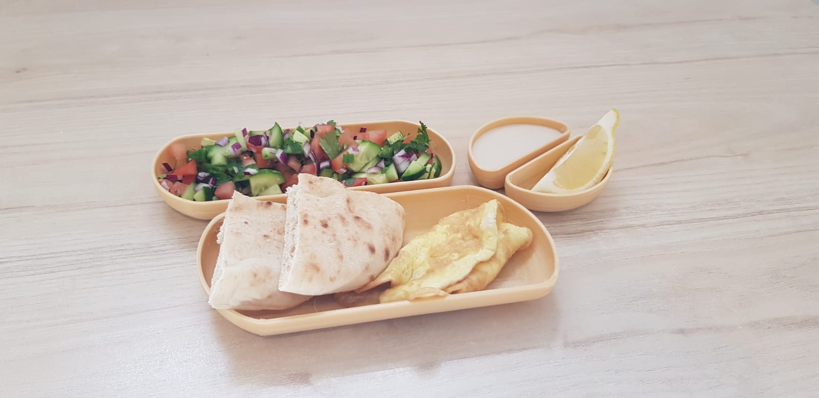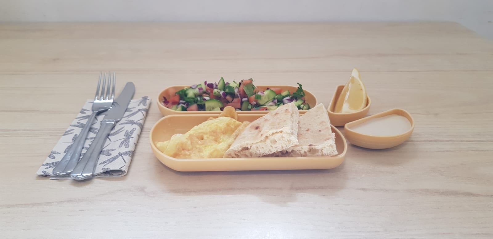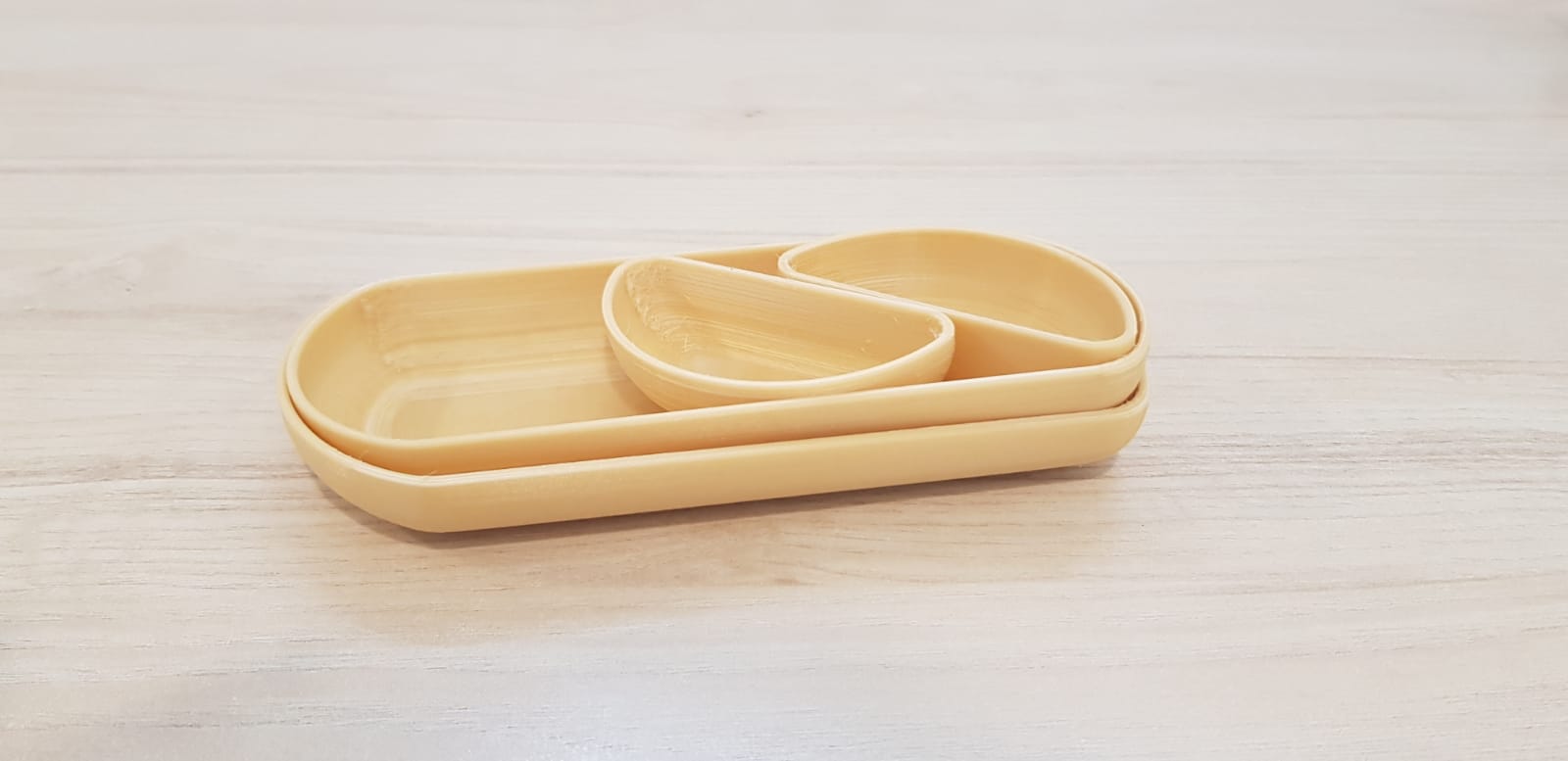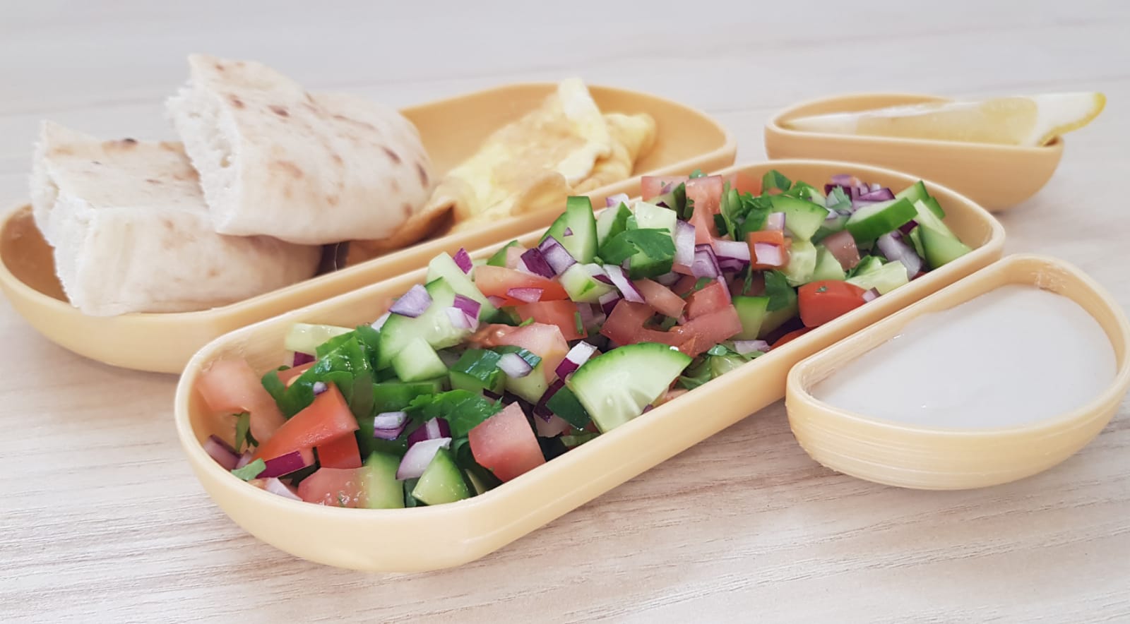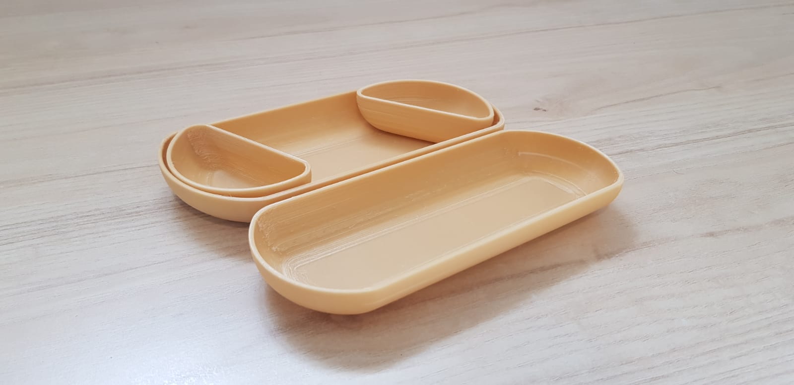 New, aesthetic and modular design for divided plates. The set of plates is designed according to the needs of large institutions that also provide service to people with special needs.