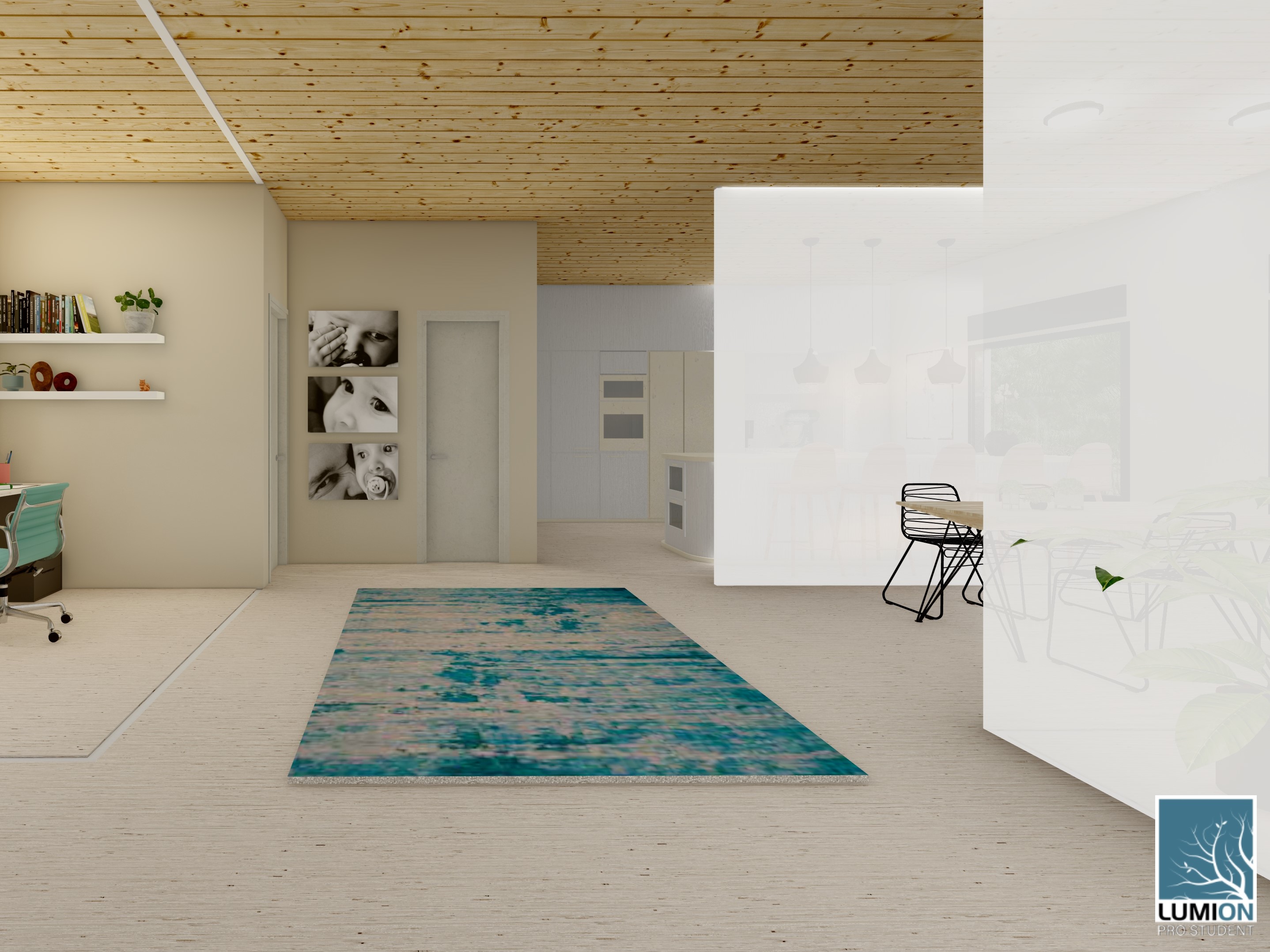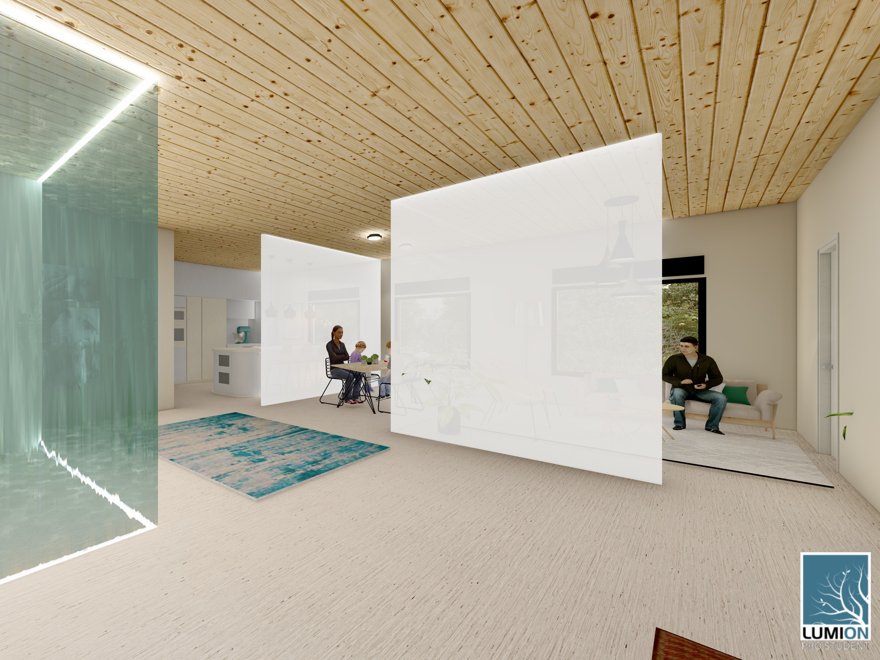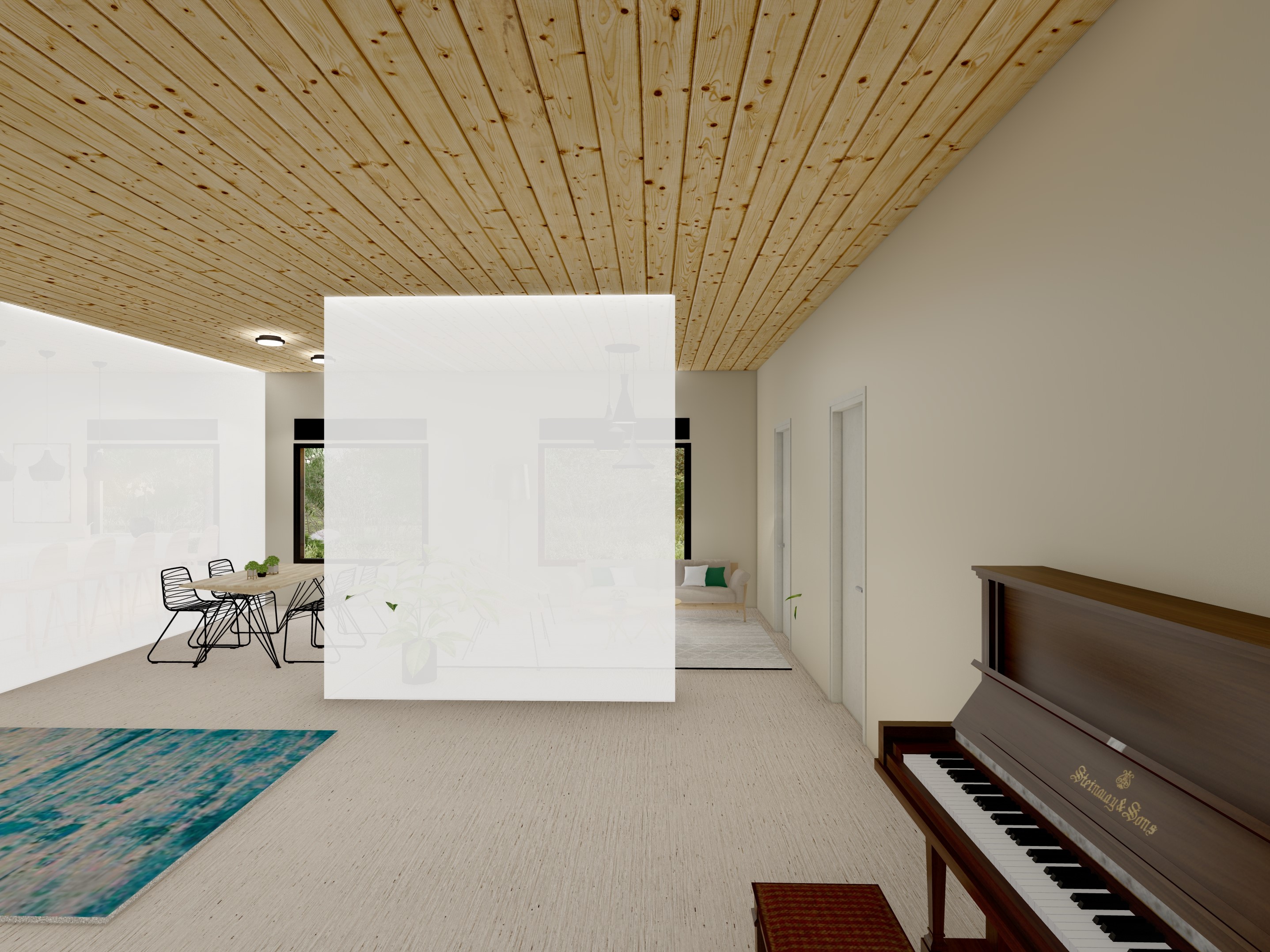 Light walls and a noise filter to create a separation between different spaces in the home.