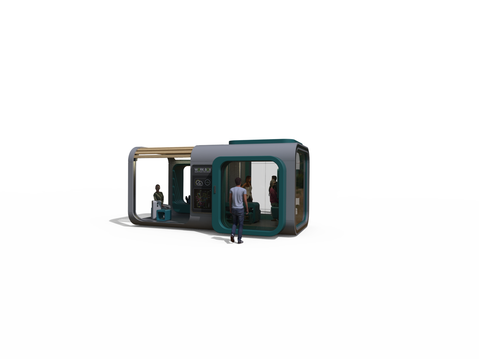 Work culture is changing rapidly with the development of technology. These changes require regular and rapid assessments, as well as adjustments, to reduce the gaps and address these ever-changing needs. WORK.BOX provides a solution to the dramatic changes taking place in the labor market and enables work in the public space. The space contains an opaque and pleasant part along with an open and shaded part. The unit contains vegetation, allows for a variety of ergonomic options and encourages interaction and collaboration. The complex space allows for a wide and fast deployment that does not depend on changing or adding infrastructure in the public space.