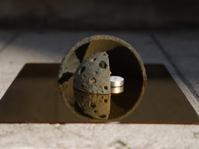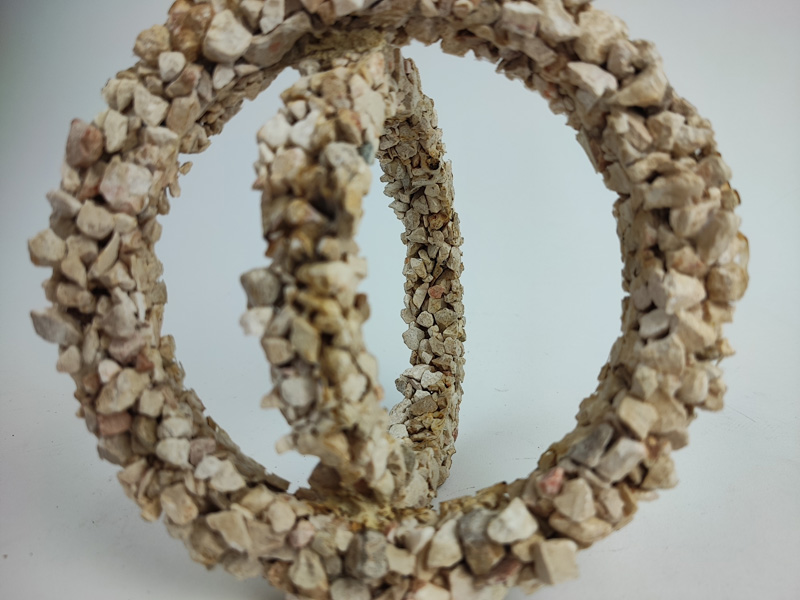 אובייקט עגול המסמל את השלם, מעגל הסמסרה, החיים והמוות. העיגול עצמו לא בדיוק שלם, הוא מחורץ. עטפנו אותו בשכבה של מים גבס ושגשוגת רכה.
