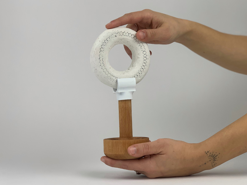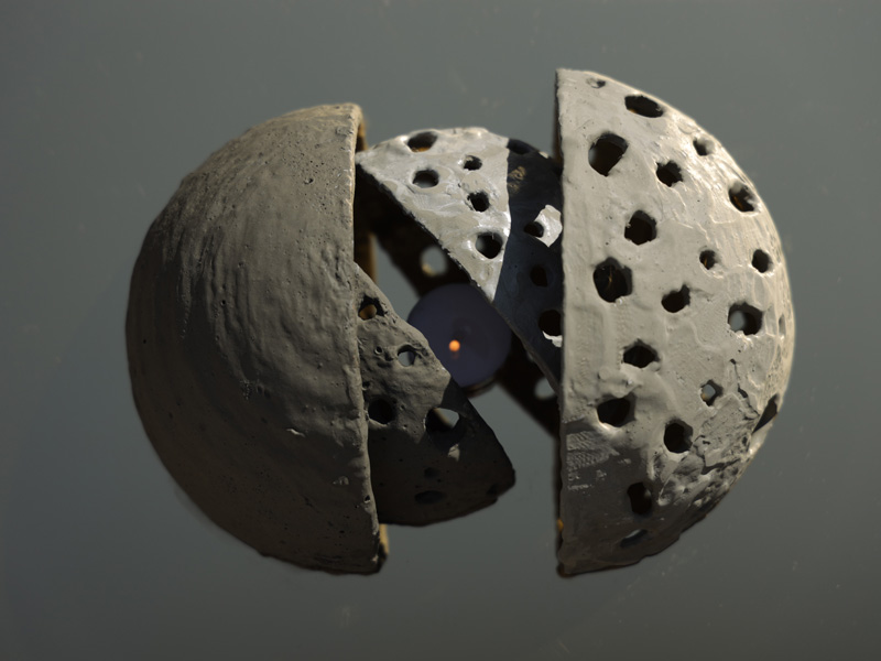 אובייקט דקורטיבי עשויי בהדפסת תלת מימד וטבילה בתערובת בטון, מנסה לבחון את המושג 'חלל', פיזי ומטאפורי ומנסה למלא אותו בעזרת משחקי אור וצל וזוויות הסתכלות שונות.