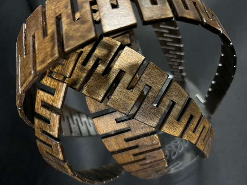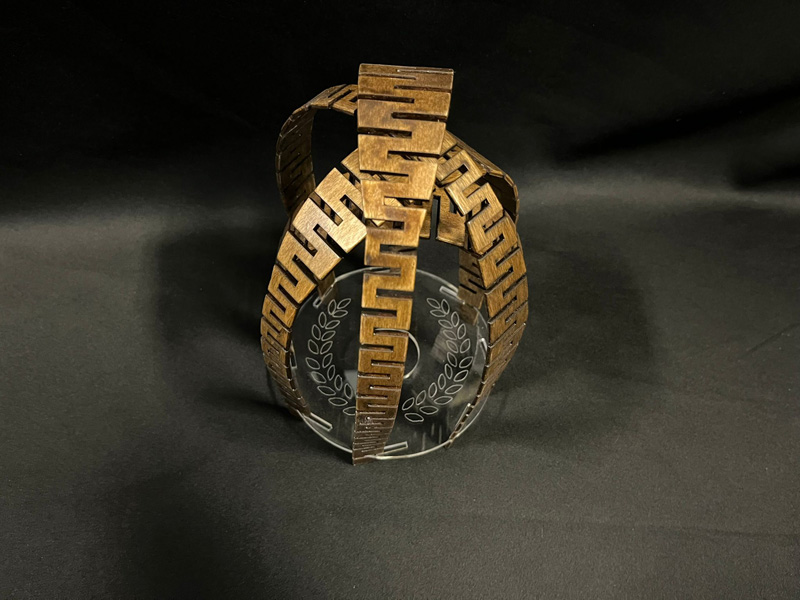 פסל הנוצר מכיפוף עץ על בסיס משטח זכוכית מסמל יגון עוצמה וכאב.