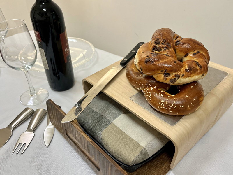 הכלאה בין כרית חימום לקרש חיתוך. ״קר-אש״. קרש חיתוך לשבת ששמור על החום של החלות גם על השולחן. כרית החימום מיועדת להתחמם על הפלטה ואז לחמם את הקרש.