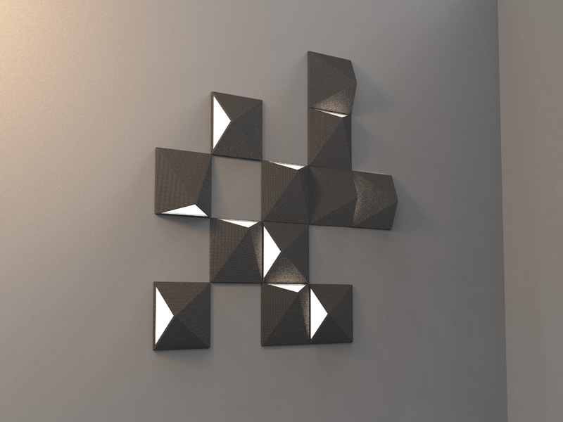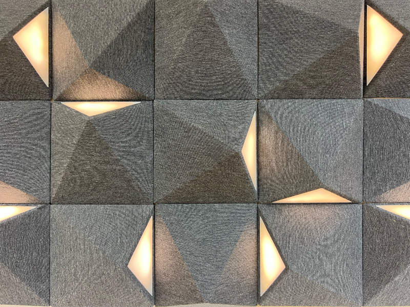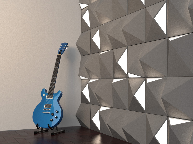 פאנלים אקוסטים המשלבים גופי תאורה ואקוסטיקה בסביבת אולפן ההקלטות,