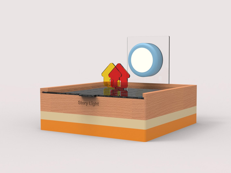 מנורת לילה לילדים המתמודדים עם פחד מחושך, מאפשרת משחק ויצירת סיפור דרך דמויות שקופות עשויות פרספקס ותאורה.