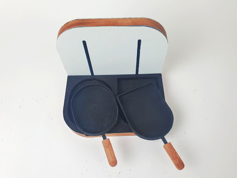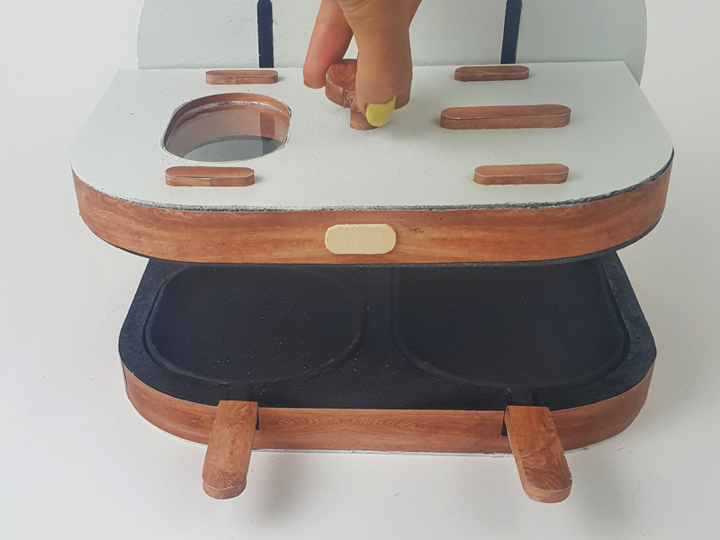 נתלה על הקיר. בעל שתי מיני מחבתות, אחת לביצה השניה לכריך. חלקו העליון עולה ויורד. ישנו חלון שקוף המאפשר לבדוק את מצב הביצה. עשוי עץ ופלסטיק לבן מט.