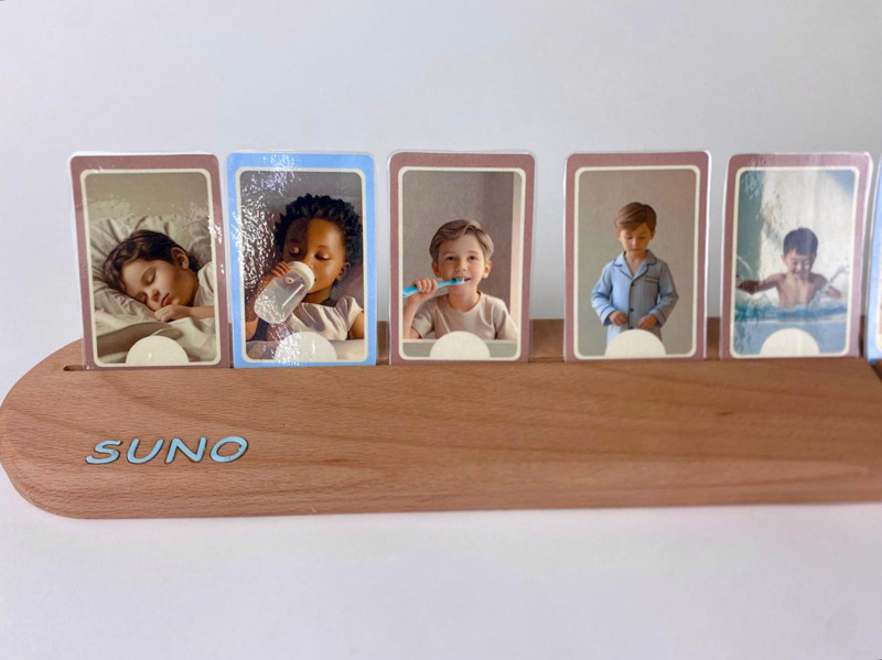 בערבים רבים שעת השינה הופכת לאתגר – הילדים לא תמיד יודעים מה הצעד הבא, ההורים ממהרים, ובמקום סיום רגוע נוצרת תחושה של לחץ ועומס. *סוּנוֹ* מציע פתרון פשוט וברור: מעמד עץ עם כרטיסיות צבעוניות, שבו הילד בוחר ומרכיב את סדר שגרת הערב בעצמו. כך הוא רואה מולו מה כבר עשה ומה נותר, מרגיש שליטה וביטחון, וההורה הופך לשותף שמלווה במקום שדורש. התוצאה – ערב נעים, קשר מחזק, ושינה רגועה יותר לכולם.
